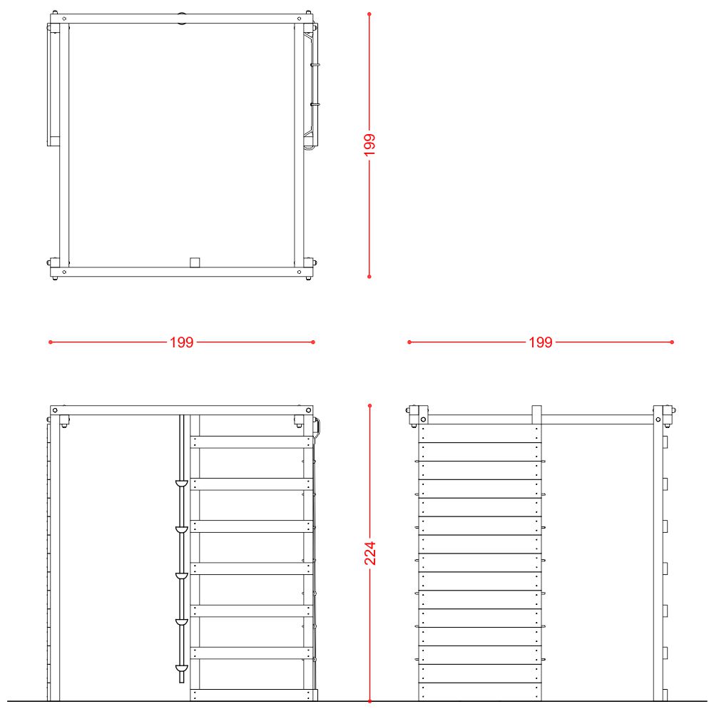 • N.15 profili (arrampicata) sez.cm.2,5x14x93, in pino nordico impregnato in autoclave secondo le norme DIN 68800;